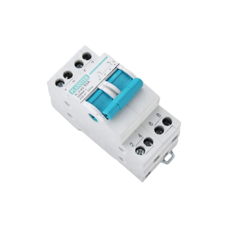Wyłącznik blokujący z ręczną konwersją o prądzie znamionowym 40A/63A montowany jest na standardowej szynie DIN (35×7,5), co jest wygodne i bezpieczne dla okablowania, a obudowa wykonana jest z formowanego wtryskowo PA66, który ma wysokie właściwości zmniejszające palność. Ma cztery funkcje łączenia, odłączania, przełączania i izolowania. Służy do włączania i wyłączania oraz swobodnego przełączania pomiędzy dwoma zasilaczami w celu podłączenia i odłączenia zasilacza. Wyłącznik blokujący z ręczną konwersją jest szeroko stosowany w szpitalach, hotelach, centrach handlowych, bankach, przemyśle chemicznym, wieżowcach, straży pożarnej i innych miejscach, gdzie przerwa w dostawie prądu jest niedozwolona, a także nadaje się do generatorów, zespołów prądotwórczych, elektrowni wiatrowych, przemysłu wytwarzania energii słonecznej, aby zapewnić ciągłą i bezpieczną pracę mocy.